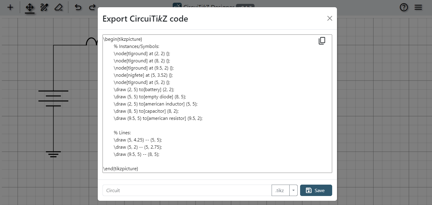 The Circuit2TikZ project is based on CircuiTikZ (which was partially maintained at the institute of electronics engineering) and aims to provide several productivity applications to simplify and speed up the design flow of drawing circuits with CircuiTikZ. These applications make it easier to create circuit drawings, suitable for use in LaTeX and TeX based environments.
